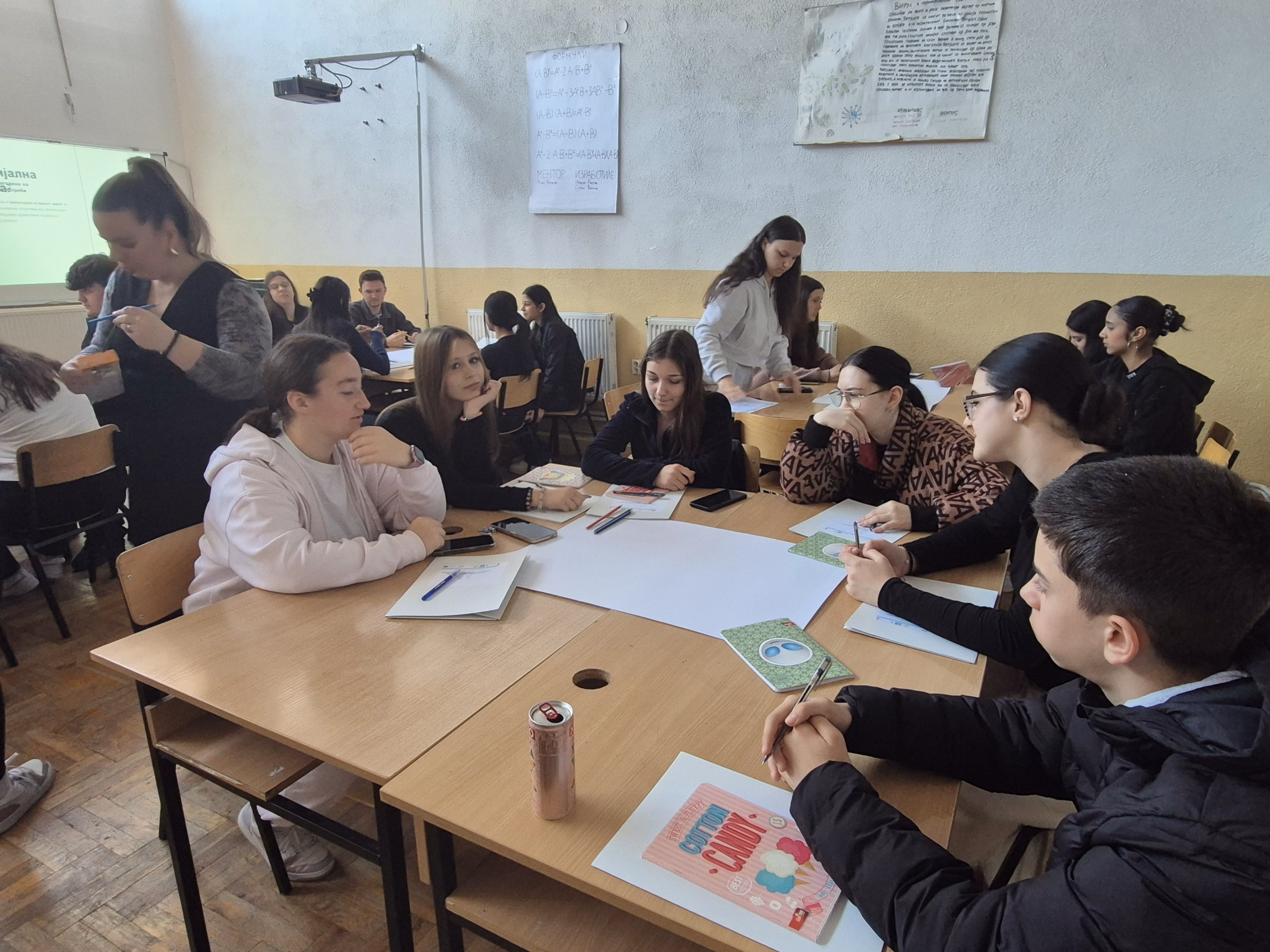 Десетина ученици од деветто одделение, заедно со професорката Ѓургица Костадиновска имаа можност да учествуваат на интересна и креативна работилница со средношколци од СОУУД „Димитар Влахов“, на тема „Развивање на вештините за профилот пекар и слаткар“.