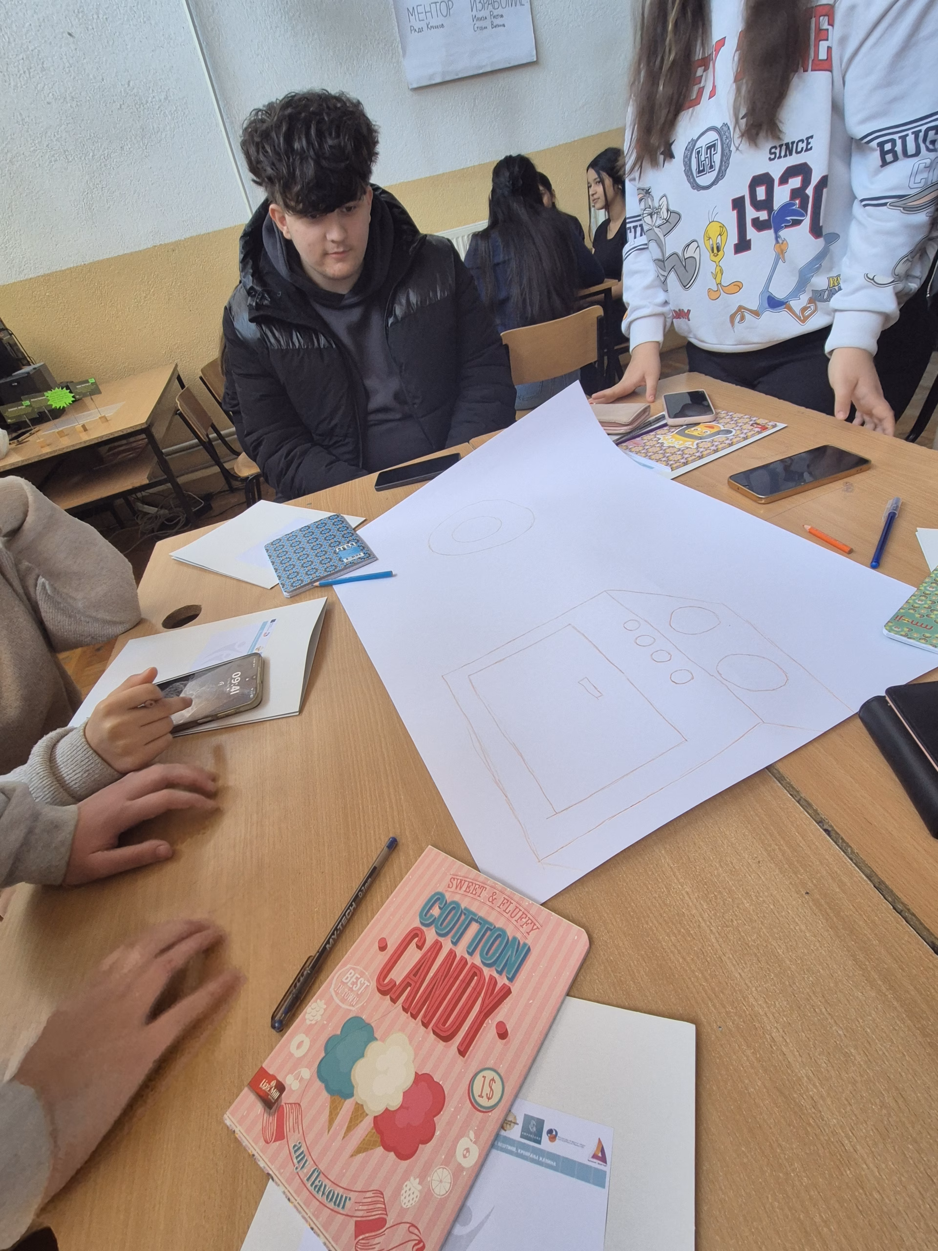 Во практичниот дел од работилницата учениците беа поделени во групи и добија задача да изработат хамер на тема „Мојата идеална пекара“. Преку цртежи и креативни идеи тие ја претставија својата замисла за изгледот, понудата и атмосферата на една модерна пекара.