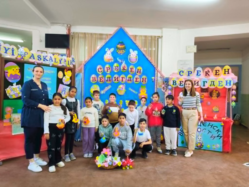 Во нашето училиште, учениците христијани и муслимани заедно учат, растат и споделуваат вредности како пријателство, почит и добрина. Велигден е празник на надежта, новиот почеток...
