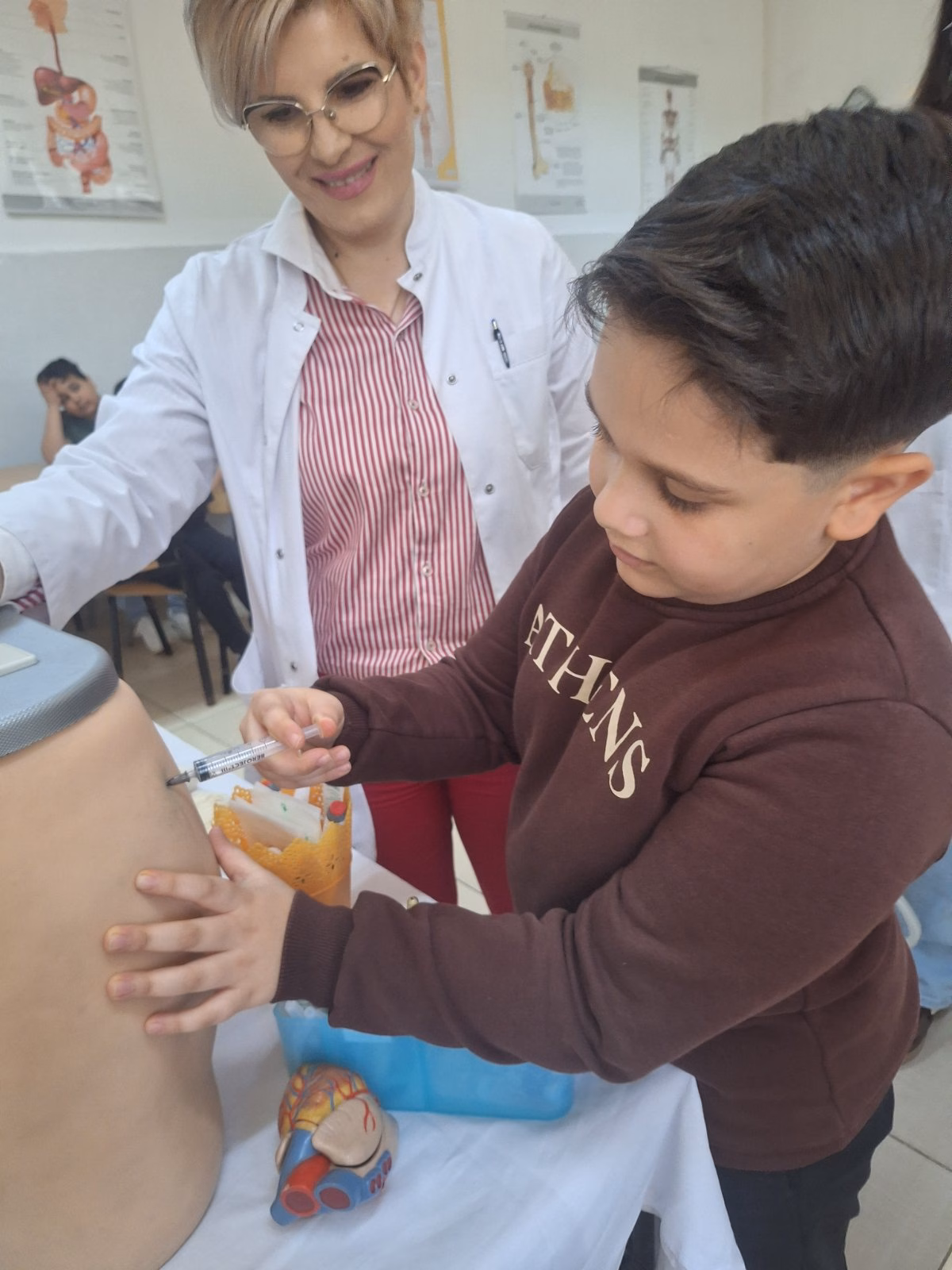 Во текот на посетата, учениците имаа можност да го продлабочат своето знаење за човековото здравје и значењето на неговото зачувување. Особено внимание предизвика престојот во лабораторијата, каде што со љубопитност и восхит набљудуваа преку микроскоп, откривајќи еден нов, невидлив свет. Преку практичната настава, тие активно учествуваа во изработка на крема, стекнувајќи нови вештини и искуства што ќе ги паметат.