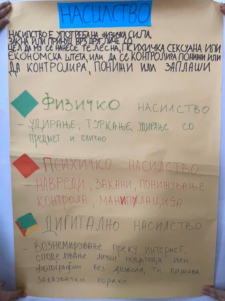 Учениците изработија хамери под мотото: „Имам сон“ и „Насилство и видови насилство“. Испишаа пораки кои ги поделија на своите соученици, изработиja цветови на кои имаа порака за: Стоп за различни видови на насилство.